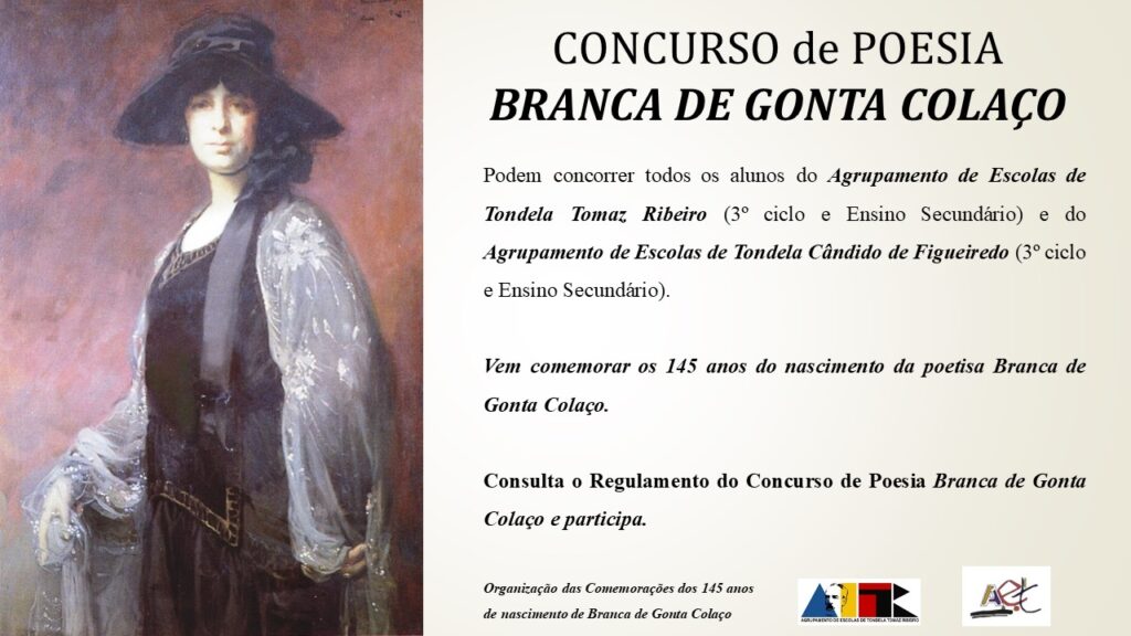 Vamos celebrar os 145 anos do nascimento da grande poeta do nosso concelho, Branca de Gonta Colaço (filha do patrono do nosso agrupamento: o poeta e estadista Tomaz Ribeiro).