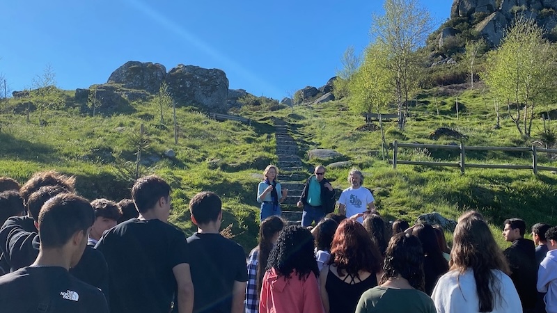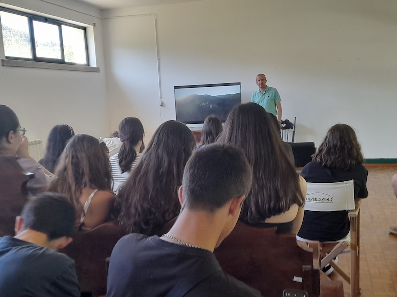 No final do percurso, os alunos passaram pela sede do CEISCaramulo, na antiga escola primária de Paredes do Guardão/Caramulo, onde foram esplanadas informações gerais sobre a Serra do Caramulo e, também, sobre a história e os projetos desta associação, como a Oficina do Burel que funciona no edifício.