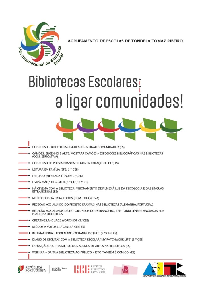 Outubro é o Mês Internacional da Biblioteca Escolar (MIBE), uma celebração anual das bibliotecas escolares em todo o mundo, uma oportunidade para darem a conhecer o trabalho que desenvolvem e, de acordo com as orientações da Rede de Bibliotecas Escolares (tutelada pelo Ministério da Educação), ”mostrarem que não são apenas um serviço, mas um centro nevrálgico vital nas escolas”. A chamada à ação é da IASL (International Association of School Librarianship). O tema escolhido este ano para esta celebração é “School libraries: community connectors!” (Bibliotecas escolares: a ligar comunidades!)
